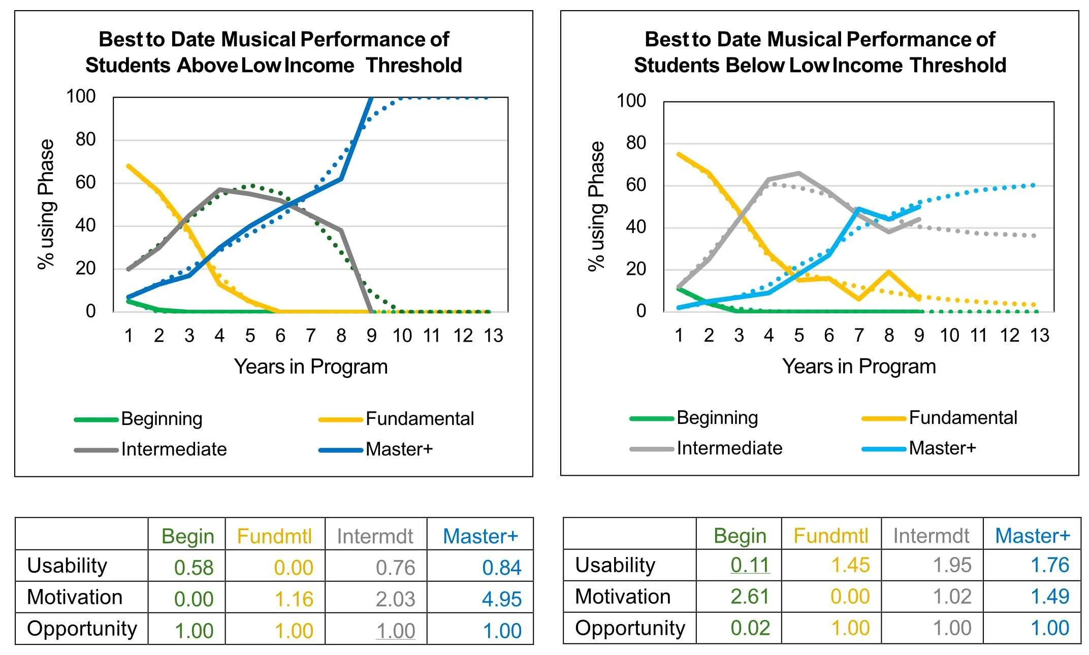 When Soundscapes Program Director, Rey Ramirez, first looked at the huge differences in the Motivation value (M), he immediately focused on the issue of private lessons. Soundscapes is now working on ways to make private lessons more accessible to this most impoverished group.