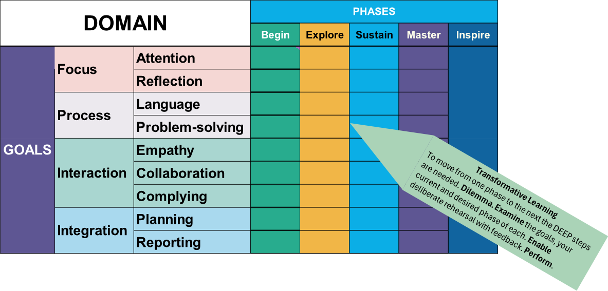 The first step of transformative learning is to discern a dilemma. Next, we examine the dilemma and this is where the diagram becomes a powerful tool that gets us to the answers much quicker than we could without it. Examining with the website and the summary chart begins by identifying the domain of the activity by making three choices:
